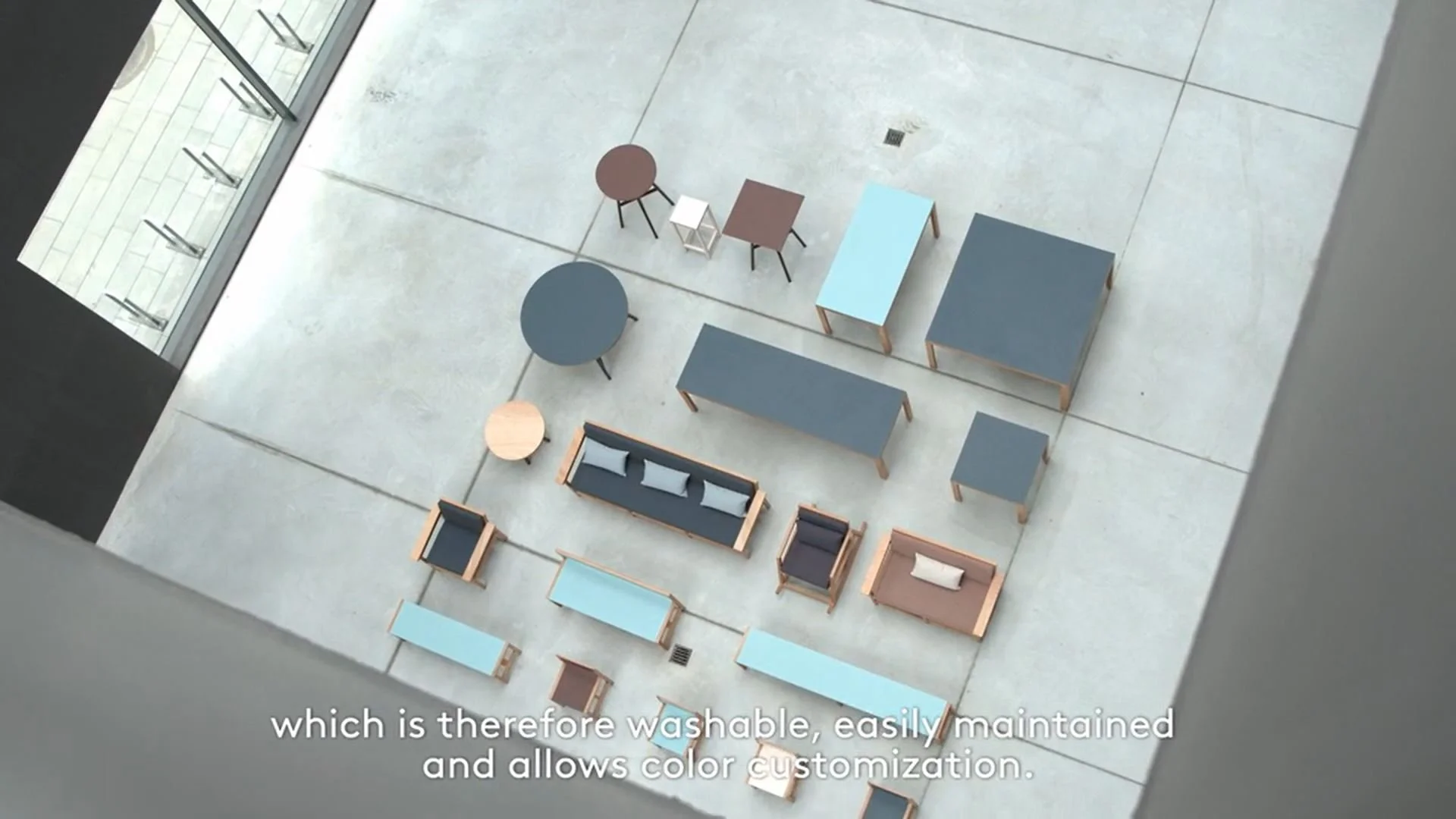 Collection de mobiliers en contreplaqué okoumé et découpe CNC, réalisé pour LAN architecture.