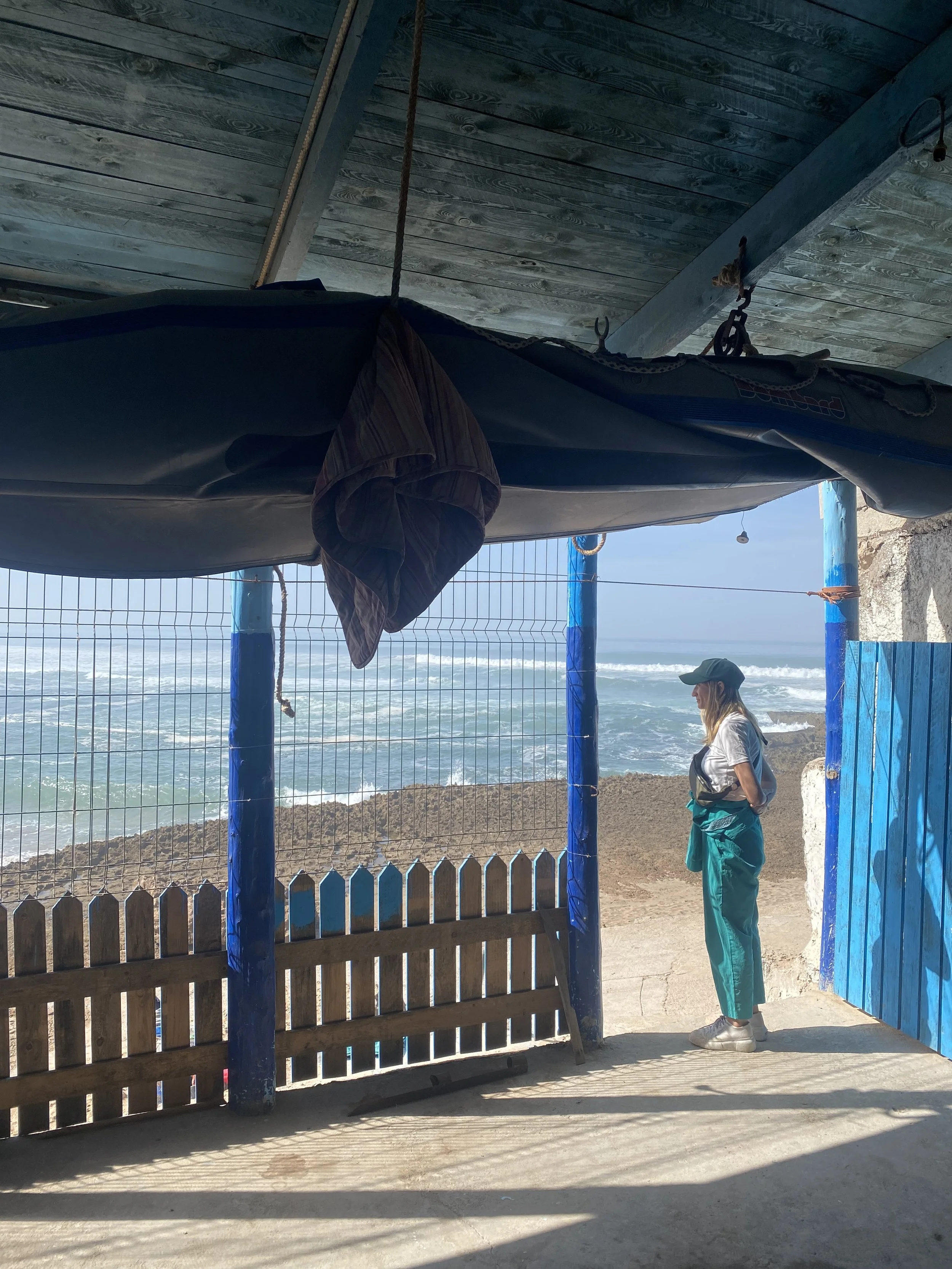 En contrebas, là où le sable devient dune, puis rocaille, s’étend le troisième territoire, ultime frontière avant l’océan : le monde des pêcheurs tourné vers les lourds rouleaux incessants de l’Atlantique. Enfin, pour celui qui s’avancera plus au sud vers le Marabout -ancienne mosquée- érigée aux confins des siècles à l’embouchure de l’Oued, la réserve nationale et ses créatures ailées, dont l’ibis chauve est roi en ce royaume.